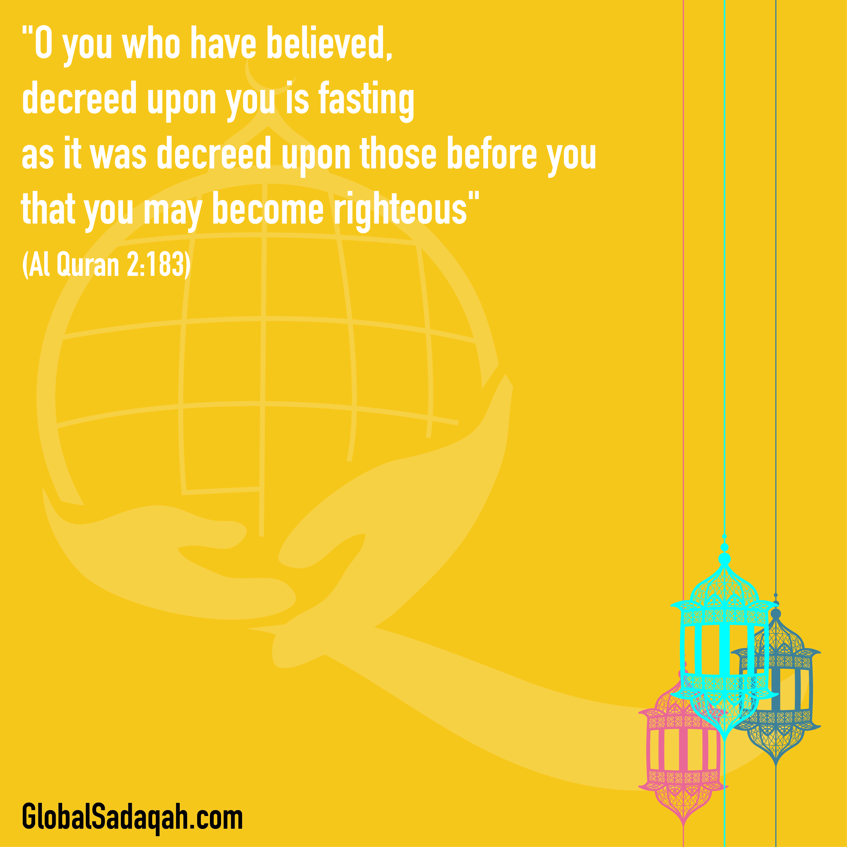 “O you who have believed, decreed upon you is fasting as it was decreed upon those before you that you may become righteous” (Al Quran 2:183)